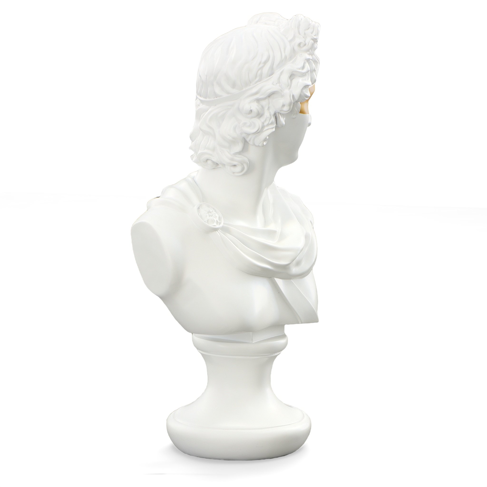 The simple design of the clean white bust contrasted against the loan stroke of golden color across the eyes.