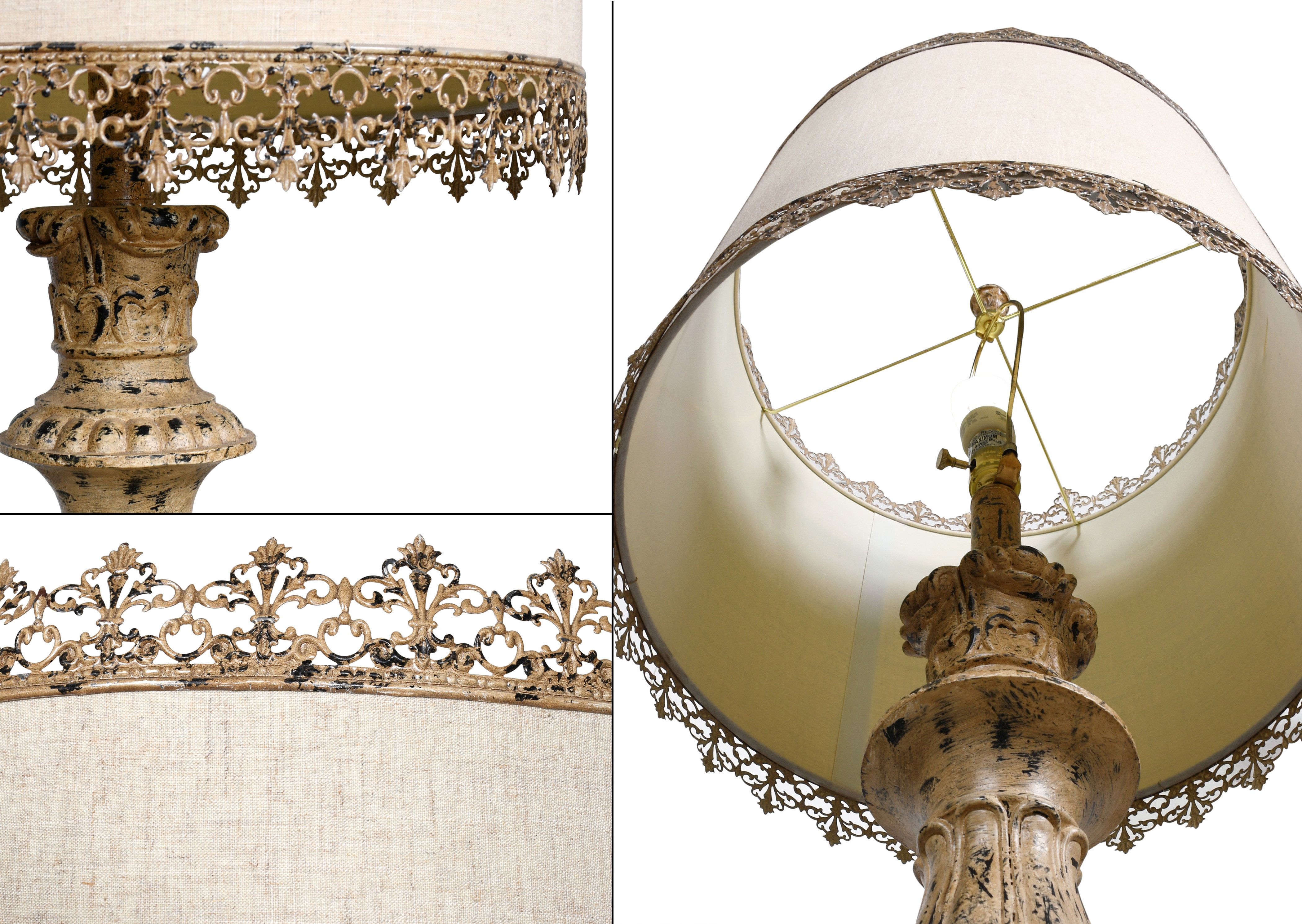 Our 68 " tall Bordeaux Floor Lamp is a very beautiful floor lamp. The design and details have a feel of the turn of the century style that has been brought to a larger grander scale for more grand and beautiful interiors. The base is hand cast in durable polyresin over an iron interior structure. The quality finishing is all hand done by artists with an appropriate for the style antiqued French beige finish. The large shade is in light beige linen and is accented with intricate and delicate metal trim, finished to bring the base and shade together. The lamp is 110 volt, UL listed and use 1 standard E26/E27 based up to 100 watt bulb. Bulbs are not included. Consider pairing with the matching Bordeaux Lamp or lamps from the same collection. Material: Poly Product Ul :Yes Wiring Ul :Yes Socket Ul :Yes Assembly :Yes
