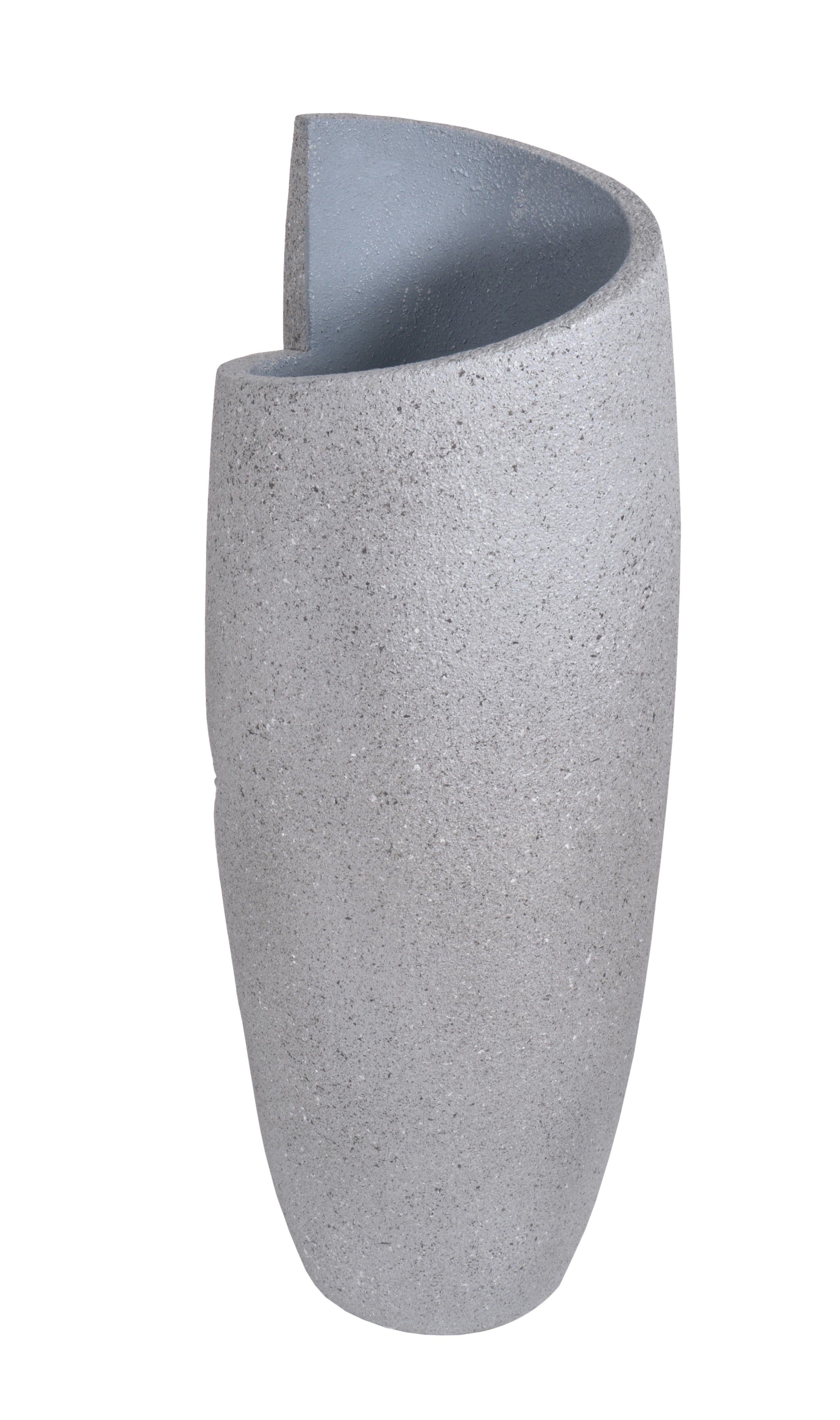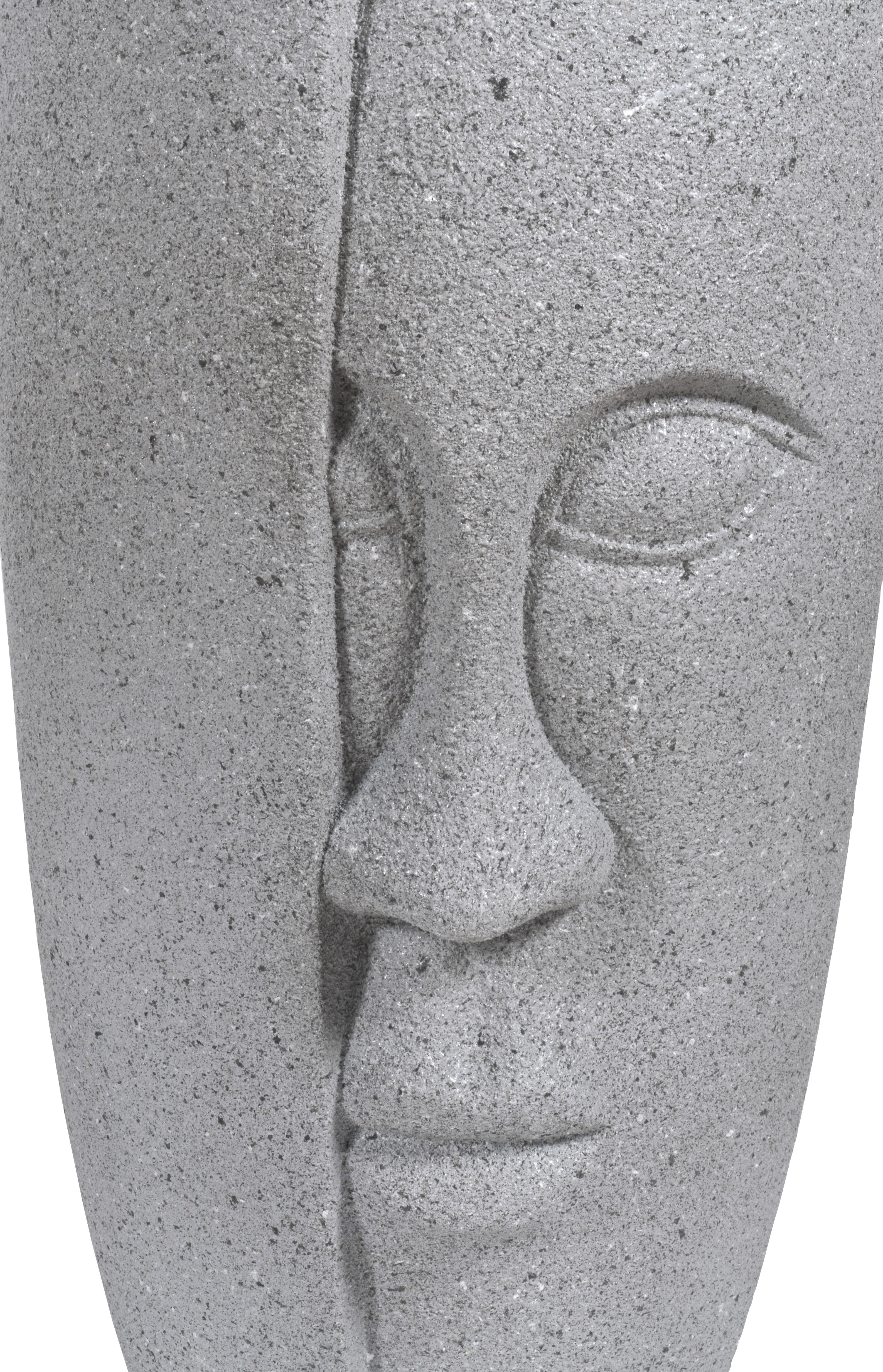 Our Bourgeois Tall Face Planter stands 43.25 Inches Tall. Our unique Bourgeois series of planters come in 3 graduated heights for creating interesting displays. Fill with flowers for enhanced function or use as stand alone decorative objects. The item is hand Cast in durable all weather indoor or outdoor Fiberglass with an exterior Rough stone granite grey finish. No assembly Required. Buy one size or combine with other sizes.