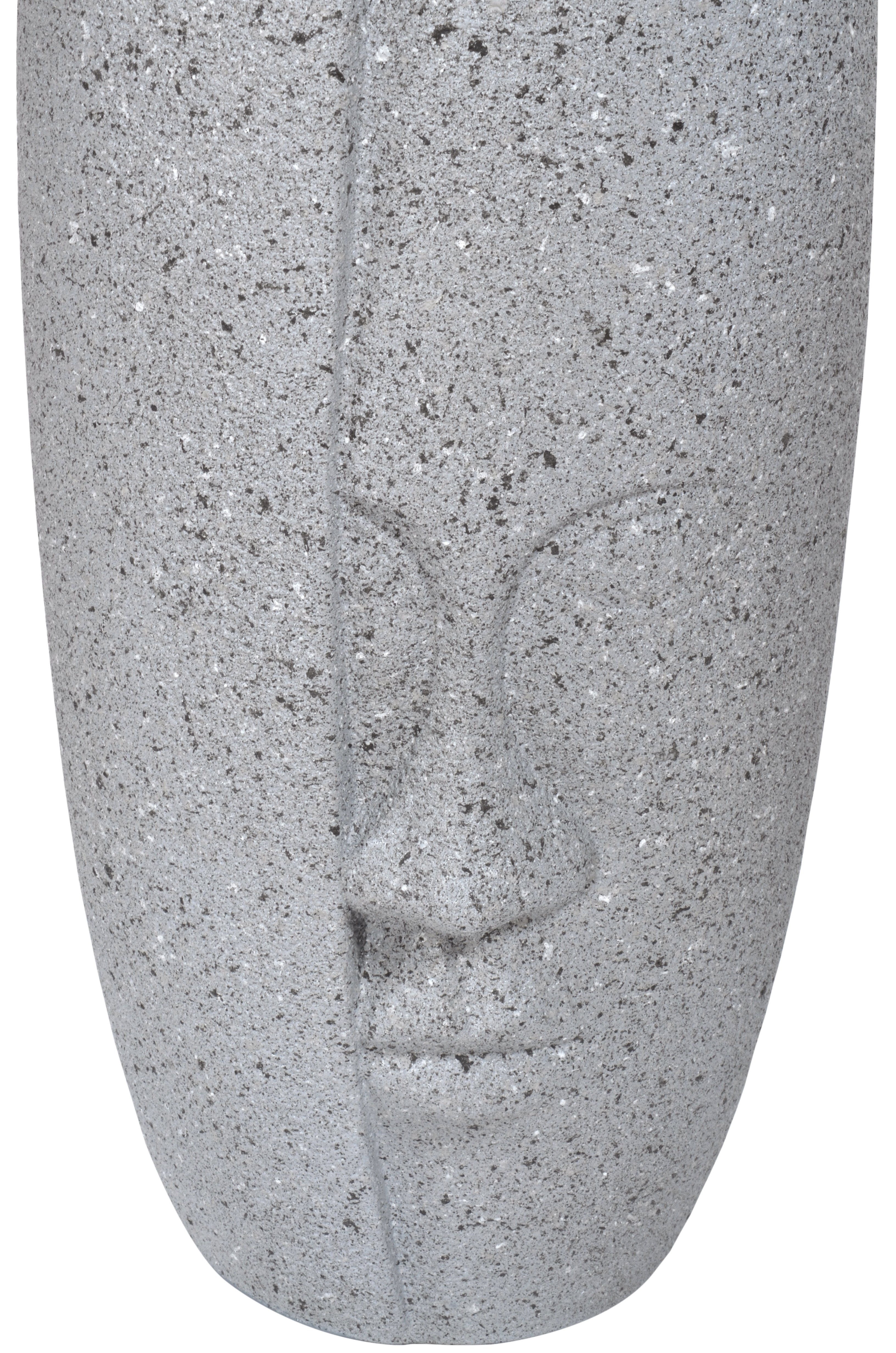 Our Bourgeois Face Planter 28.50 Inches Tall. Our unique Bourgeois series of planters come in 3 graduated heights for creating interesting displays. Fill with flowers for enhanced function or use as stand alone decorative objects. The item is hand Cast in durable all weather indoor or outdoor Fiberglass with an exterior Rough stone granite grey finish. No assembly Required. Buy one size or combine with other sizes.