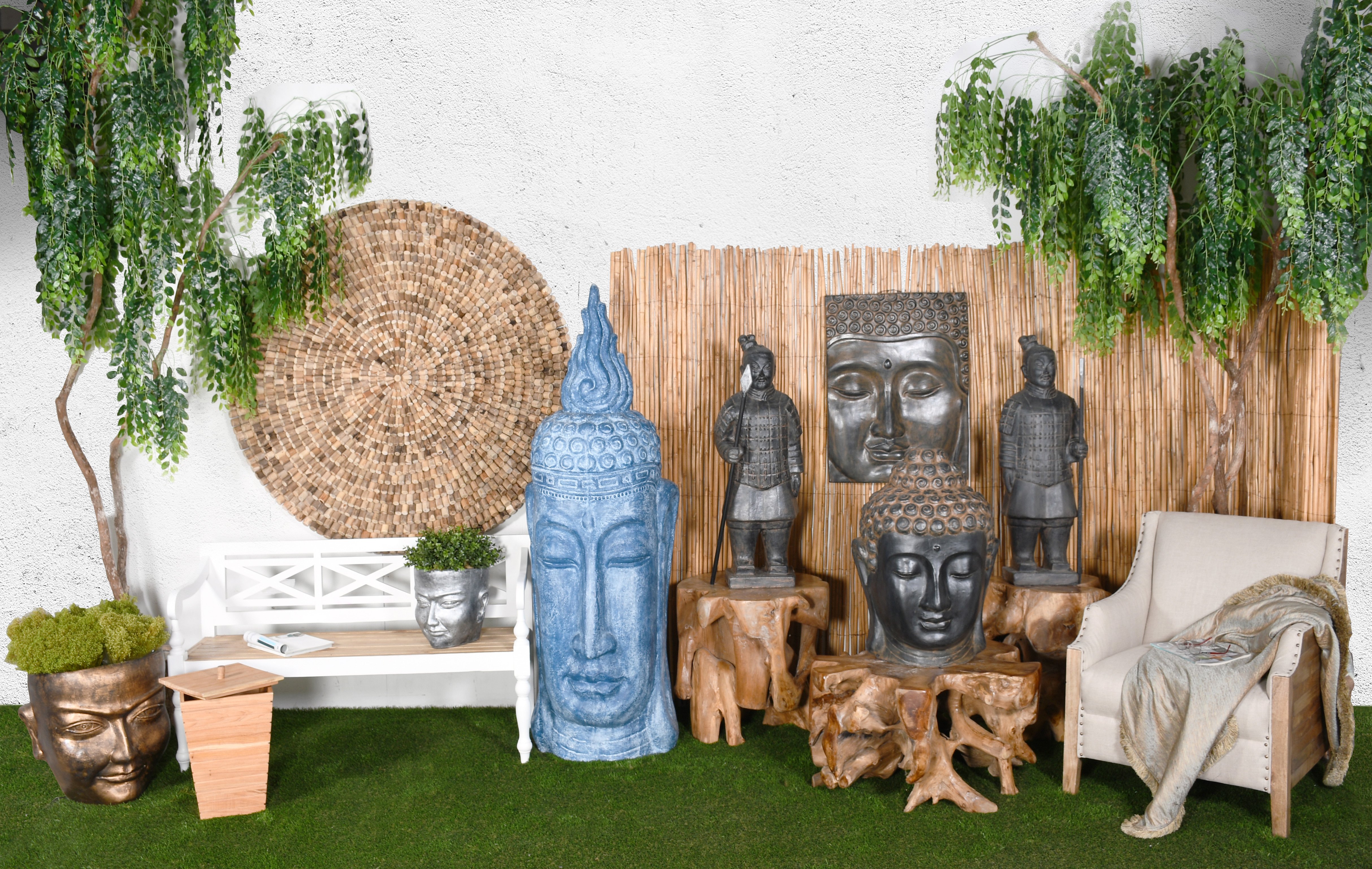 The left and right standing pair of standing terra cotta warriors comes in our black earthy finish 42" tall. The sculptures are individually hand cast and hand finished in a durable fiberglass and cast stone reinforced material. The black earthy finish is durable and offers an authentic antique quality and richness. These recreations of todays' famous terracotta army depict the bravest and most loyal of soldiers from the guards of qin she Huang, the first emperor of China and creator of the qin dynasty. It is said qin, in order to have the same military power and protection in the after life, was buried with 1000's of these soldiers in 210–209 bce who for centuries to come protected the emperor buried, the tomb was discovered in the 1970's by a farmer. These 41" tall smaller sized sculpture are suitable for outdoor or indoor use and could be displayed proudly on the floor or a table top. The set of 2 arrives individually crated and completely assembled with Chinese spears of war mounted in each warriors raised hands.