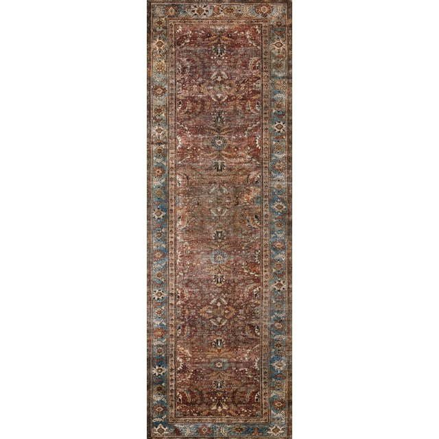 Layla Printed Oriental Distressed Brick / Blue Area Rug