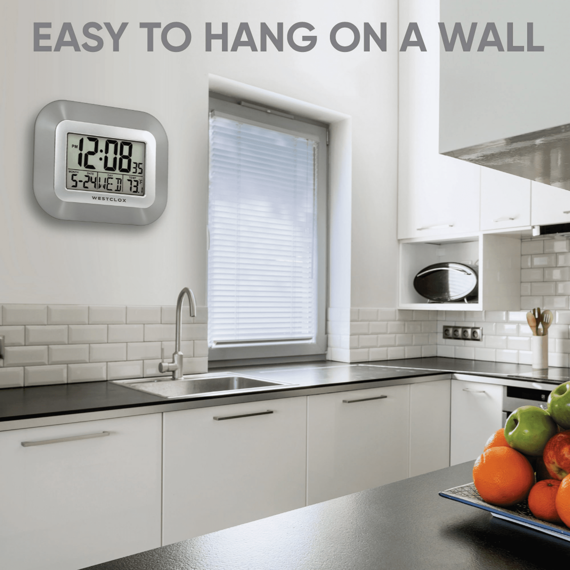 Westclox Classic Modern Silver Easy To Read LCD Display Digital Wall Clock with Large Numbers and Day, Date, and Temperature Westclox Classic Modern Silver Easy To Read LCD Display Digital Wall Clock with Large Numbers and Day, Date, and Temperature Westclox Classic Modern Silver Easy To Read LCD Display Digital Wall Clock with Large Numbers and Day, Date, and Temperature