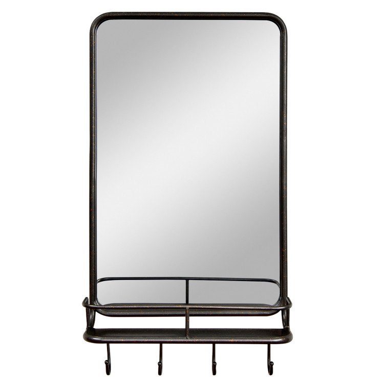 Home > Wall Bathroom Mirror with Shelf Hooks Sturdy Metal Frame for Bedroom Living Room