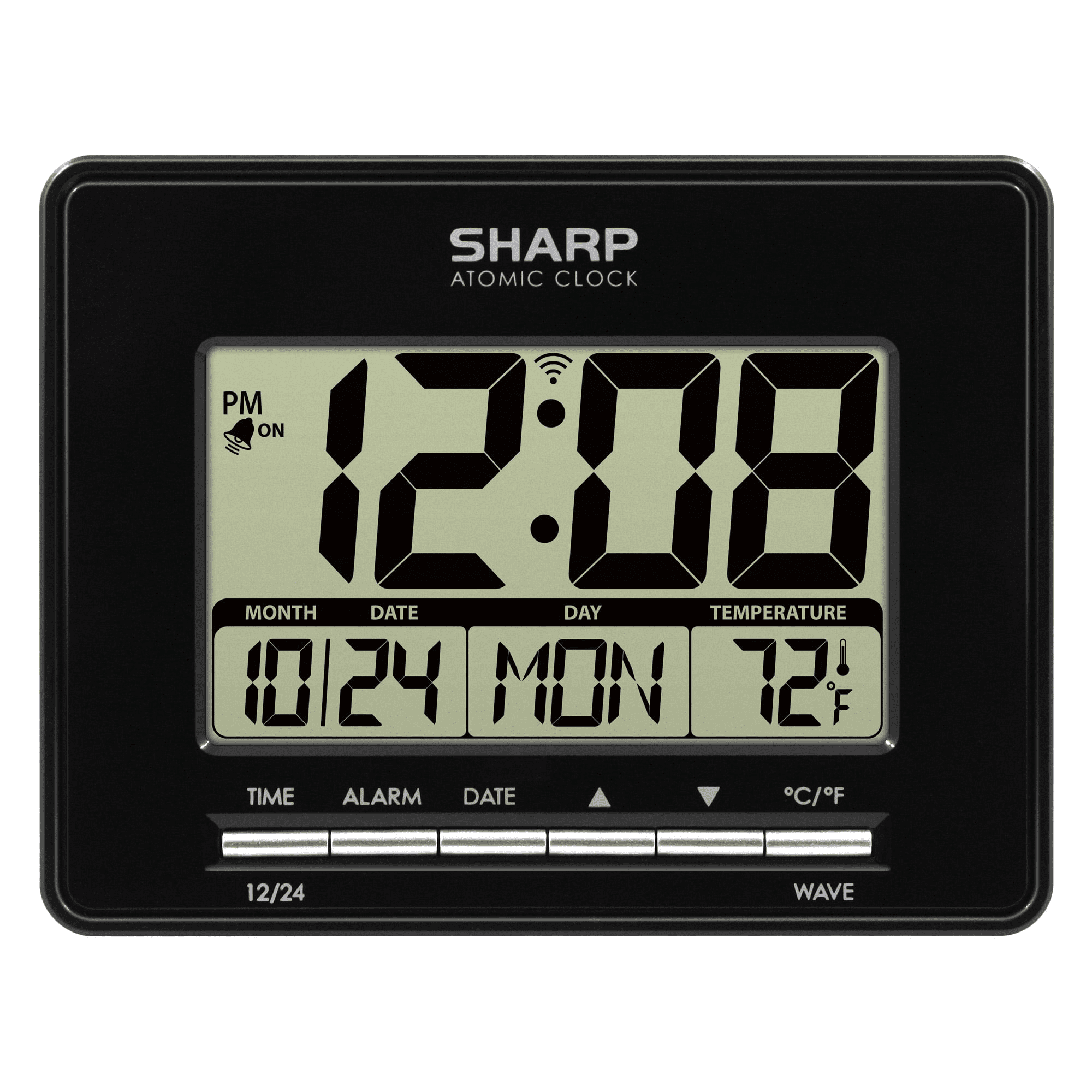 SHARP Digital Atomic Clock, Atomic Accuracy, Date, Temperature, Black Case, LCD Display SHARP Digital Atomic Clock, Atomic Accuracy, Date, Temperature, Black Case, LCD Display SHARP Digital Atomic Clock, Atomic Accuracy, Date, Temperature, Black Case, LCD Display
