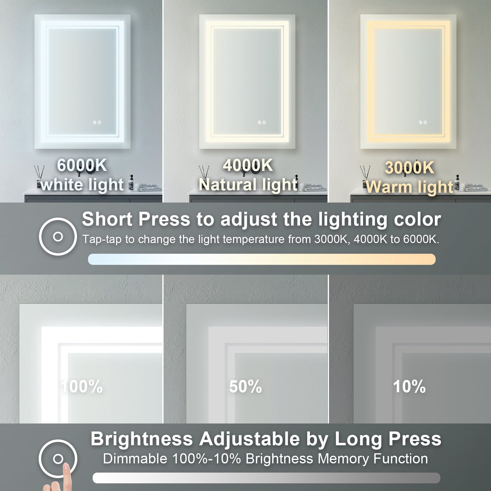 Home > 7 Size LED Bathroom Mirror Wall Mounted Vanity Mirror Anti-Fog Mirror Dimmable Lights with Touch Switch(Horizontal/Vertical)