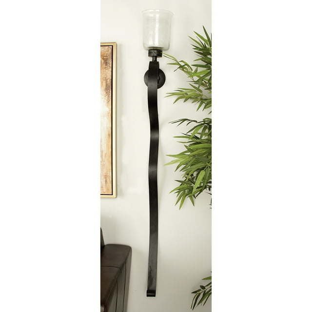 DecMode Black Metal Scroll Handmade Long Pillar Wall Sconce