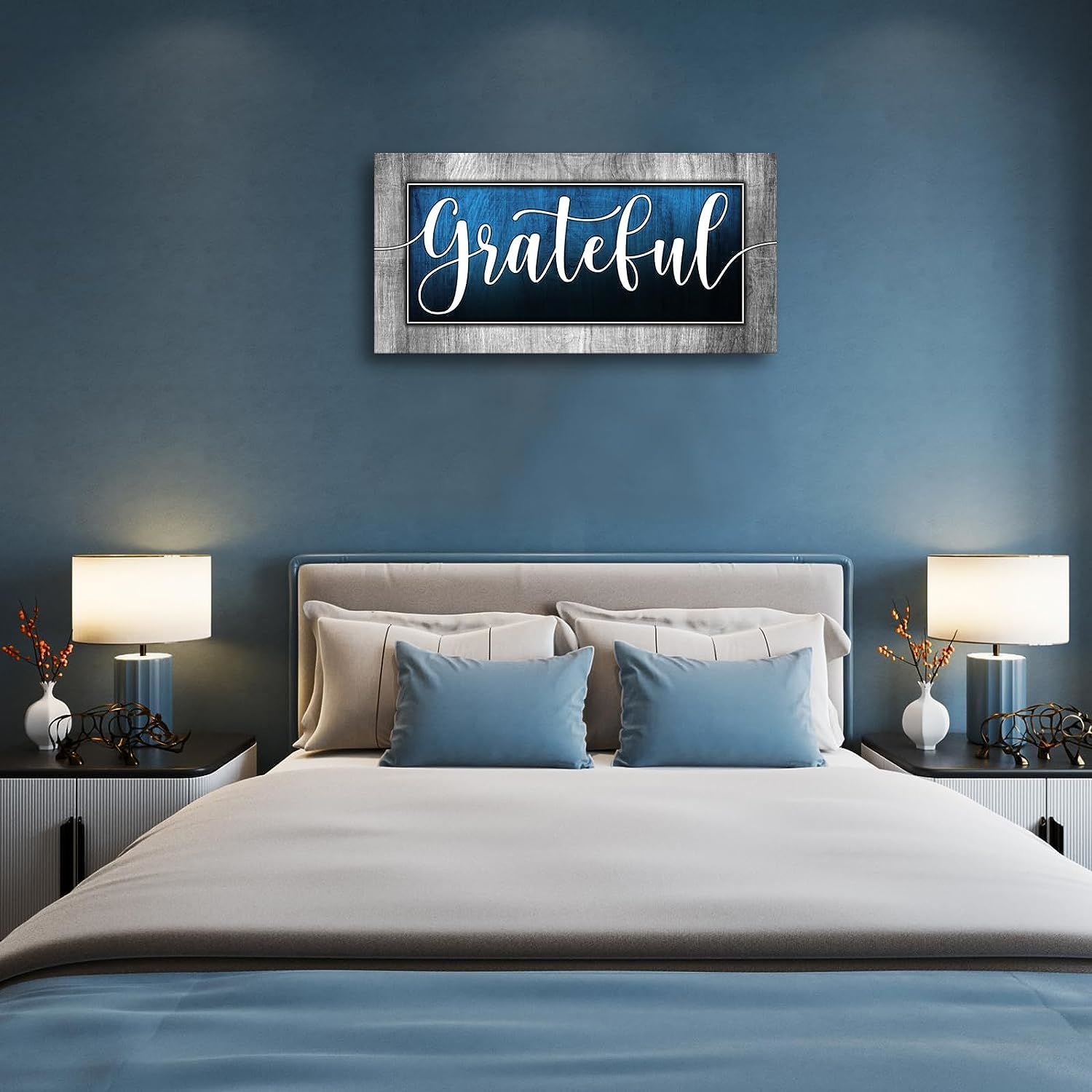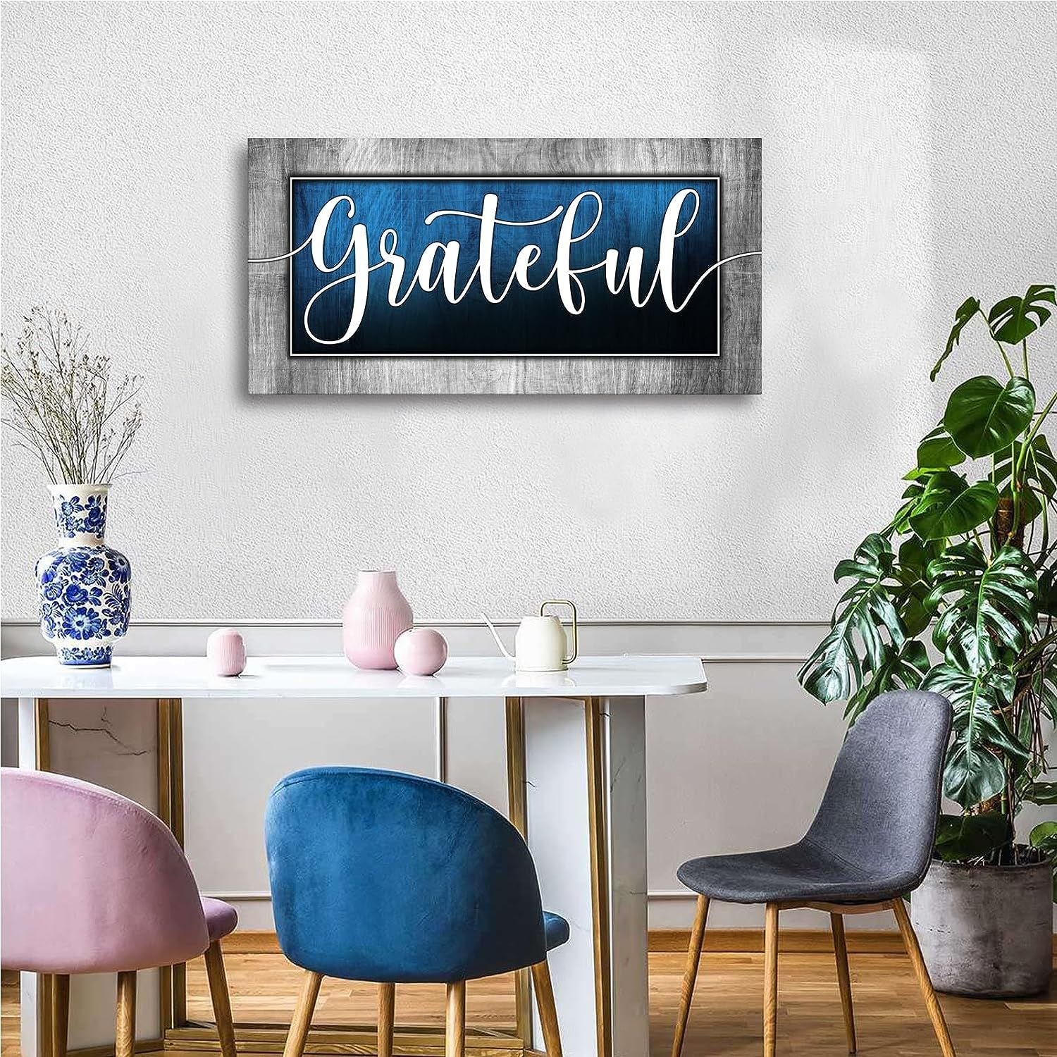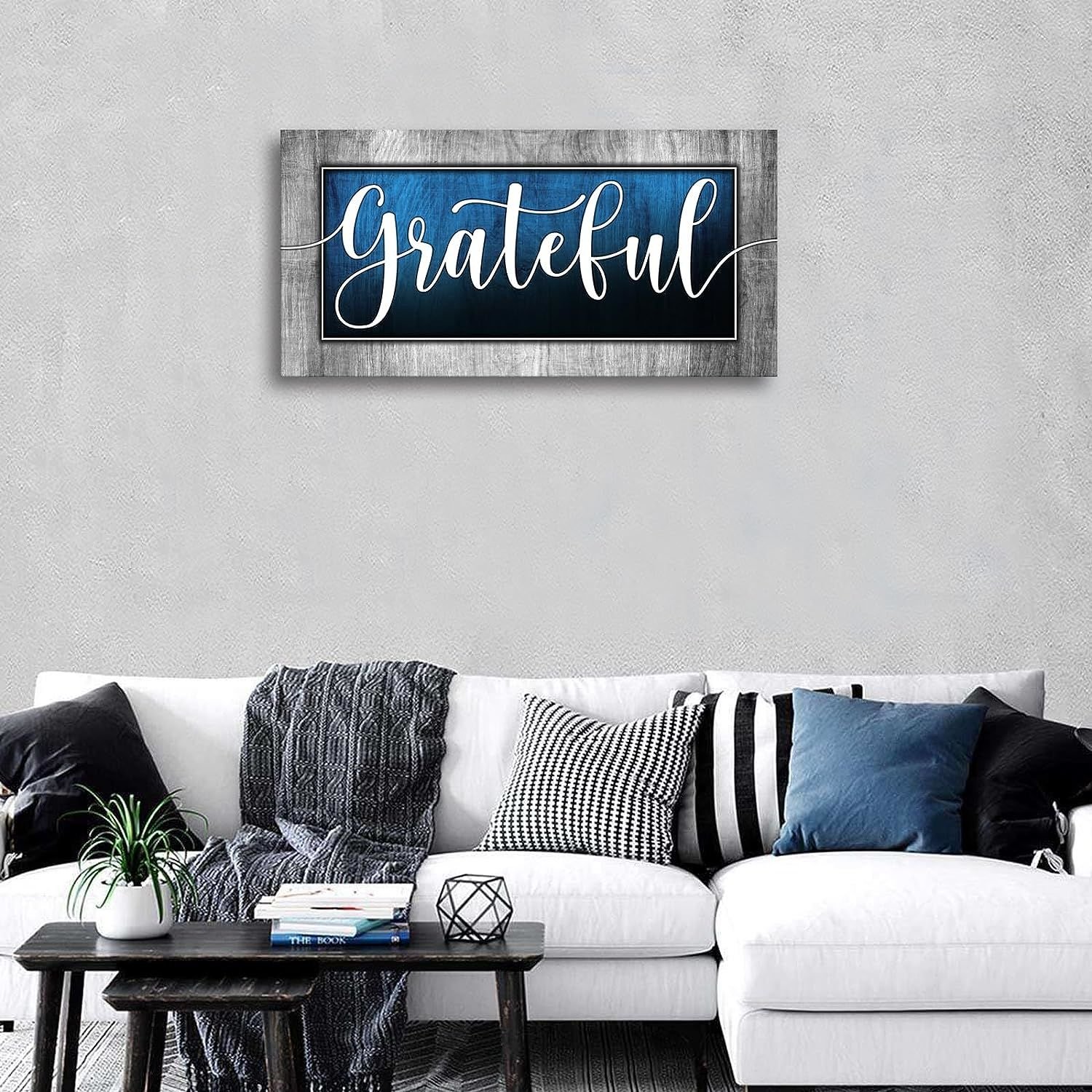Grateful Signs for Home Decor, Grateful Wall Decor, Blue Family Canvas Print Poster Painting Picture Artwork,Bedroom Dining Room Wall Decor 20"x40"