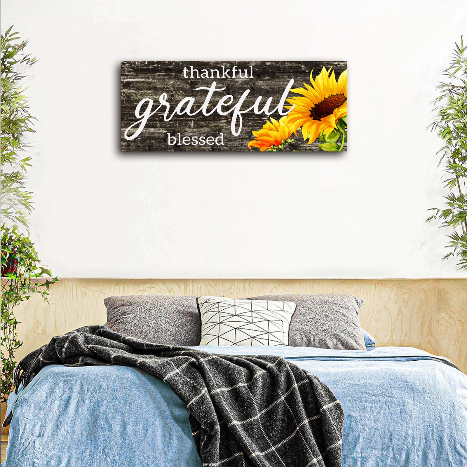 Home > Thankful Grateful Blessed Wall Decor Rustic Wood Sign Vintage Sunflower Framed Artwork Painting for Bedroom Farmhouse Home Decoration 16"X40"